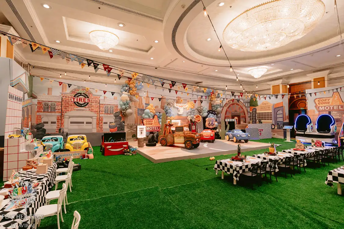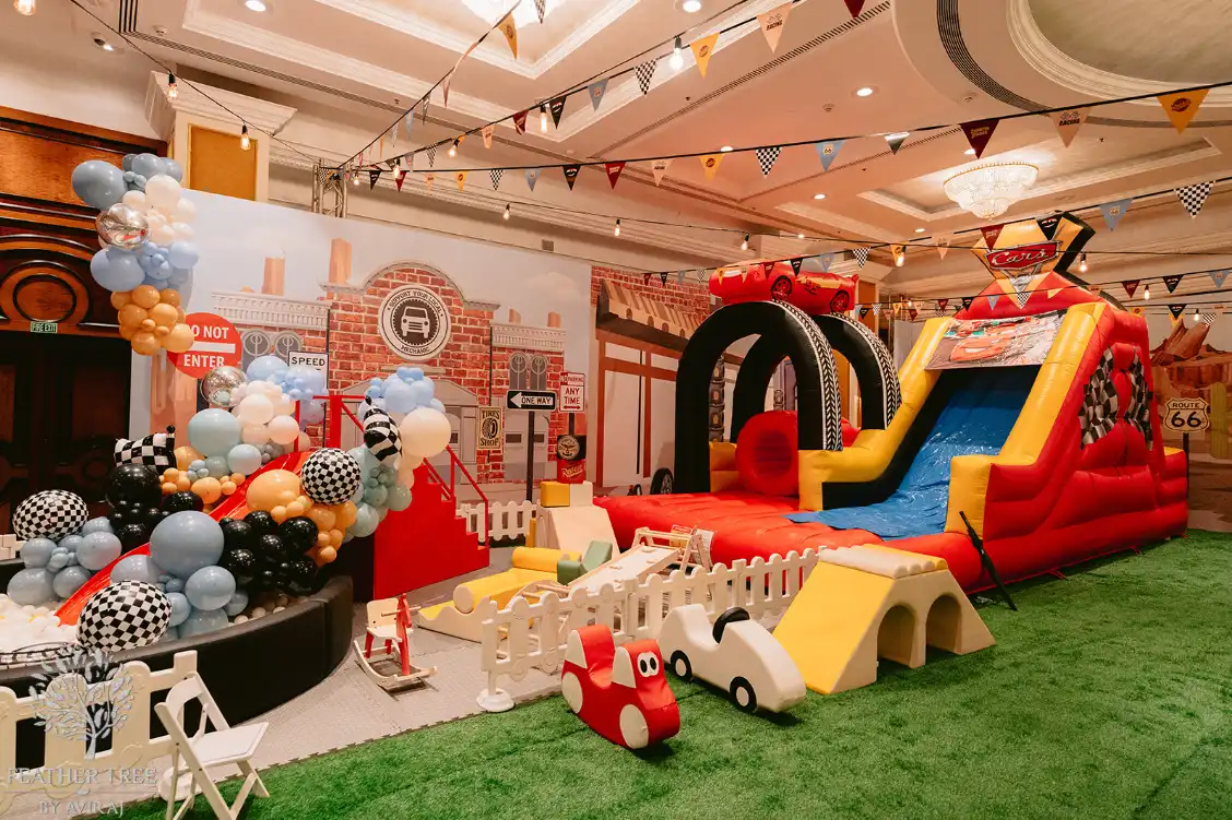 Hosted at Taj Lands End, the party was designed around an immersive Disney Cars theme, transforming the venue into a playful, high-energy wonderland. The celebration featured an engaging anchor who kept the young guests entertained throughout, along with bumper cars, a bouncy castle, sensory play zones, a car wash station, puppet shows, music and dance performances, art activities, a toy train, and an instant photo booth and alot more!